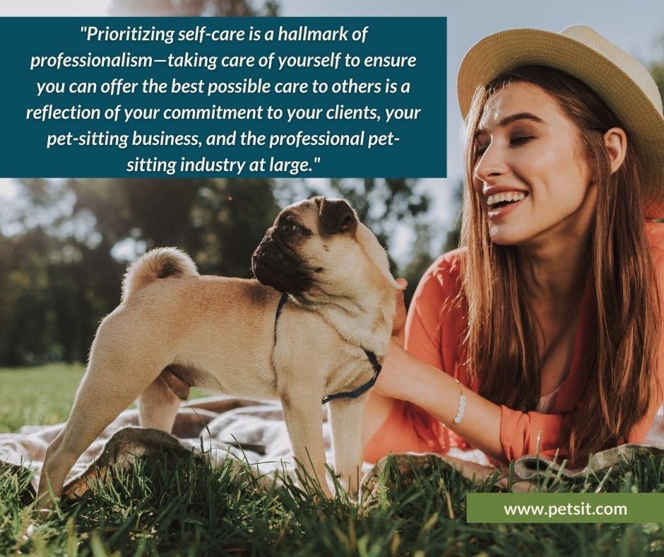 Self-care is not a dirty word. In fact, prioritizing self-care is a hallmark of professionalism—taking care of yourself to ensure you can offer the best possible care to others is a reflection of your commitment to your clients, your pet-sitting business, and the professional pet-sitting industry at large.